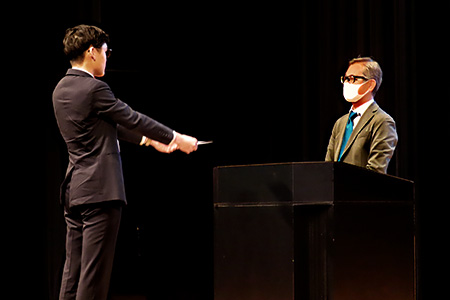 値観」について伝えられました。式典ならではの緊張感の中にも時折笑顔が見られ、会場は和やかな雰囲気に包まれました。