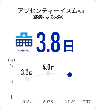 | ※4 | 何らかの疾病や症状が原因で病欠、病気休業の状態を指す用語であり、上記数字は1年間に業務を行えない状態が何日あったかを測定しています。